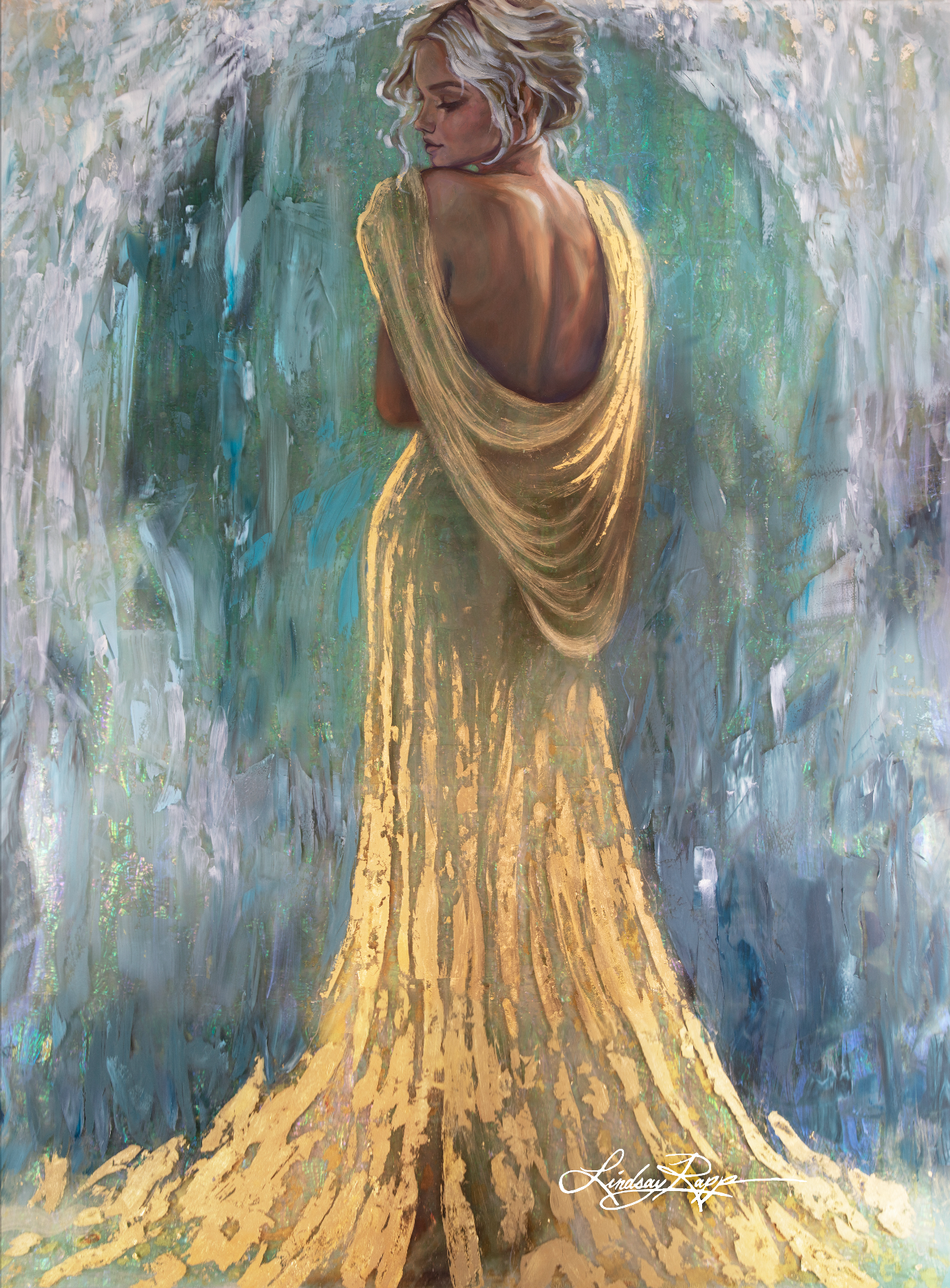 I create these prints myself in my art studio. They are the only prints that I hand sign and can add or alter any color or cropping/editing customizations or add personalized notes on the backside of the canvas at your request. I paint glossy paint textures on top of the canvas for a more authentic, artistic touch, and can even add metallic gold leafing or metallic acrylic paint if you choose. Canvas will be rolled to be shipped in a tube. No stretcher bars nor hanging materials included. I recommend going to a local framer to have this print either stretched in a gallery wrap style or framed to match your home.