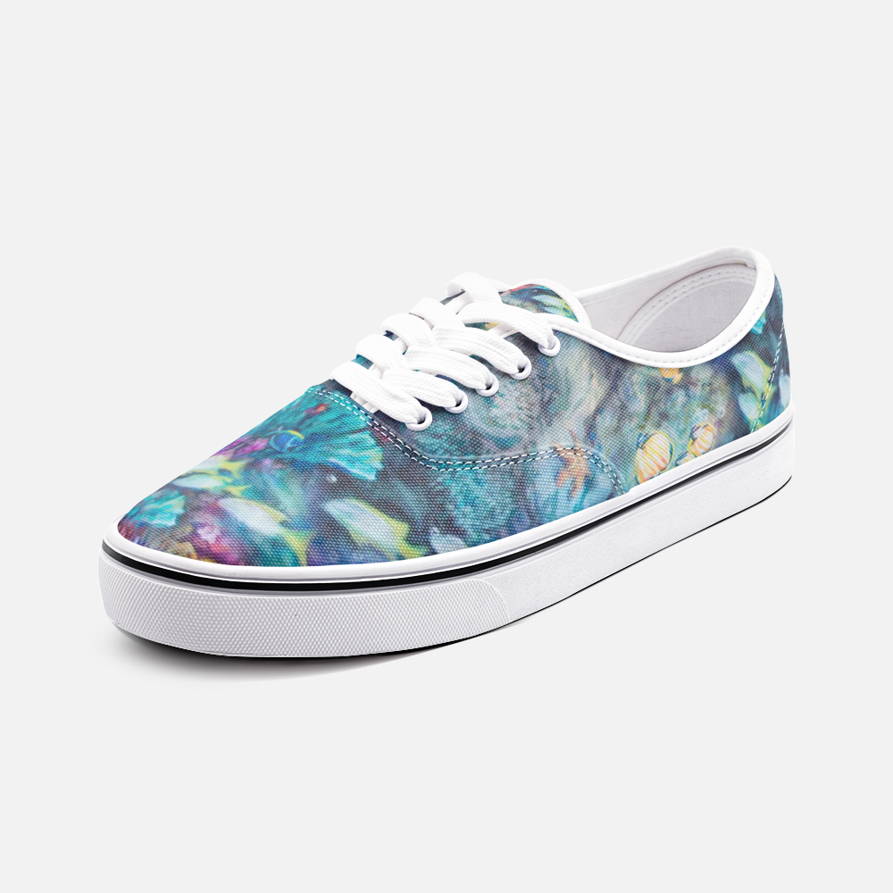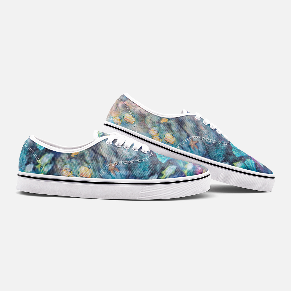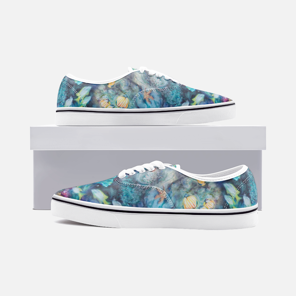 Canvas fabric & thick synthetic sole with adjustable shoelaces that are flexible both for wide and narrow feet.