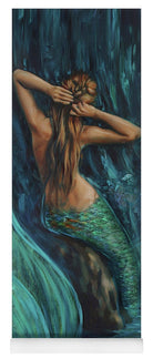 Our premium yoga mats are 24" wide x 72" tall x 0.25" thick and made from natural rubber with a blended microfiber top surface. The top of the mat has the image printed on it, and the back is solid black with textured dimples for better floor grip.