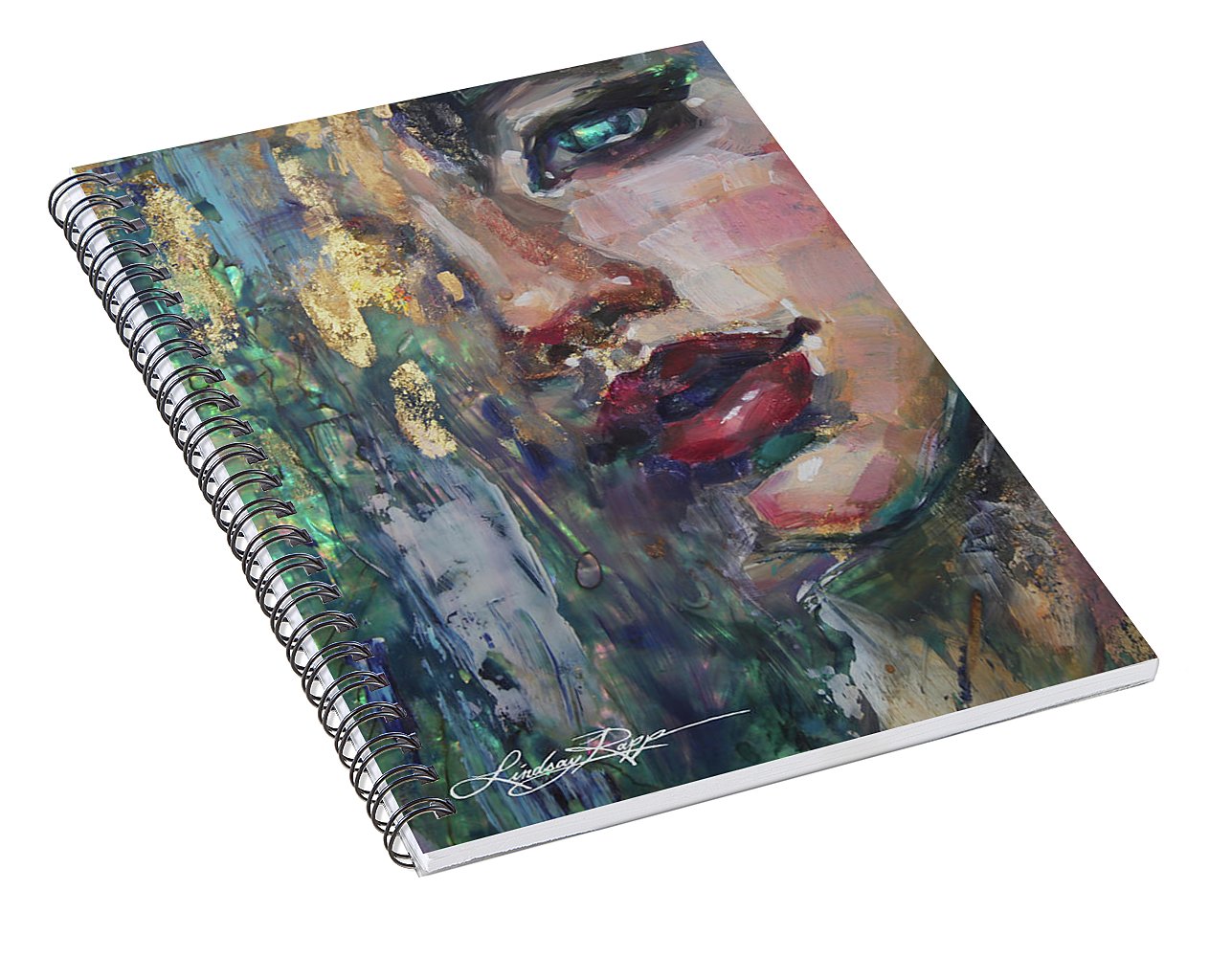 Our spiral notebooks are 6" x 8" in size and include 120 pages which are lined on both sides. The artwork is printed on the front cover which is made of thick paper stock, and the back cover is medium gray in color. The inside of the back cover includes a pocket for storing extra paper and pens.