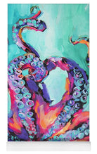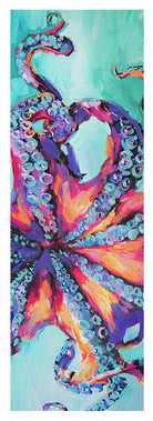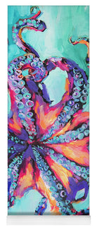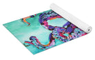 Our premium yoga mats are 24" wide x 72" tall x 0.25" thick and made from natural rubber with a blended microfiber top surface. The top of the mat has the image printed on it, and the back is solid black with textured dimples for better floor grip.